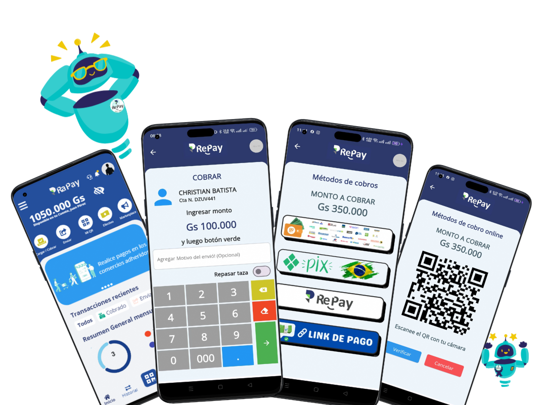 ¡Olvídate del efectivo y las tarjetas! Repay te permite cobrar y realizar pagos en comercios de forma rápida, segura y conveniente.